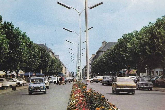 La rue de l'Abri Familial (Pierre Mendès-France de nos jours) prise a l'intersection de la place de l'Hotel de Ville en 1962. Tous les immeubles au centre de la photographie ont été arasés en vu d'un double mail pour le stationnement et du déplacement des nouvelles constructions tout au long des années 1970.